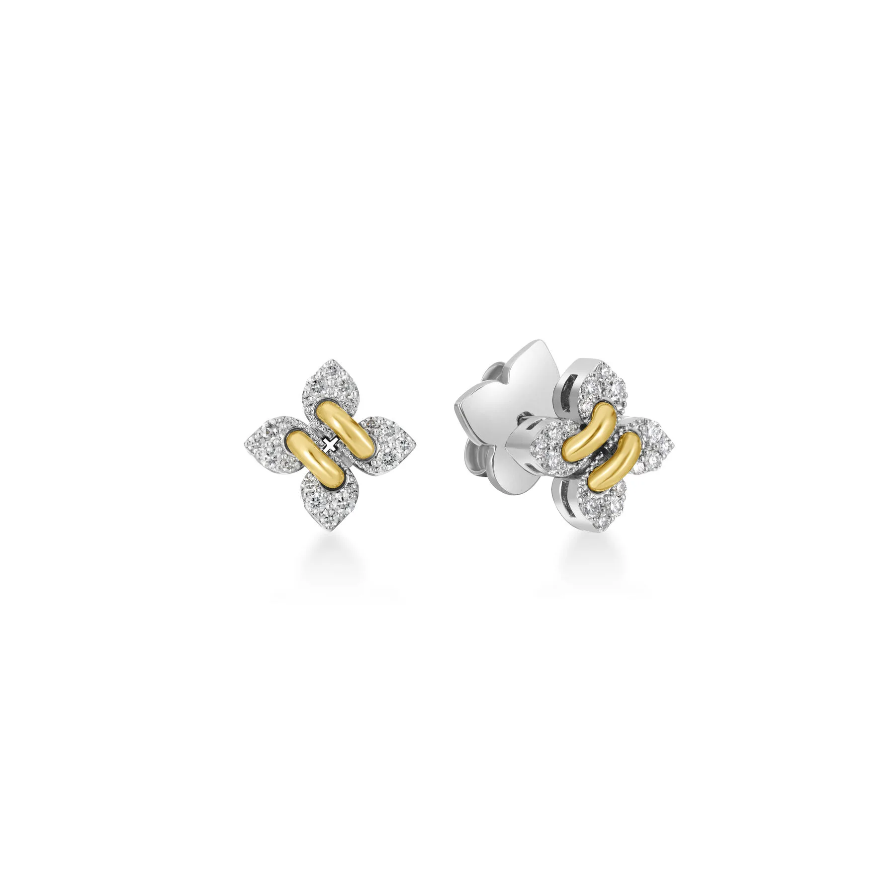 In 18K White Gold with 18K Yellow Gold details and Diamonds totaling 0.17 carats.