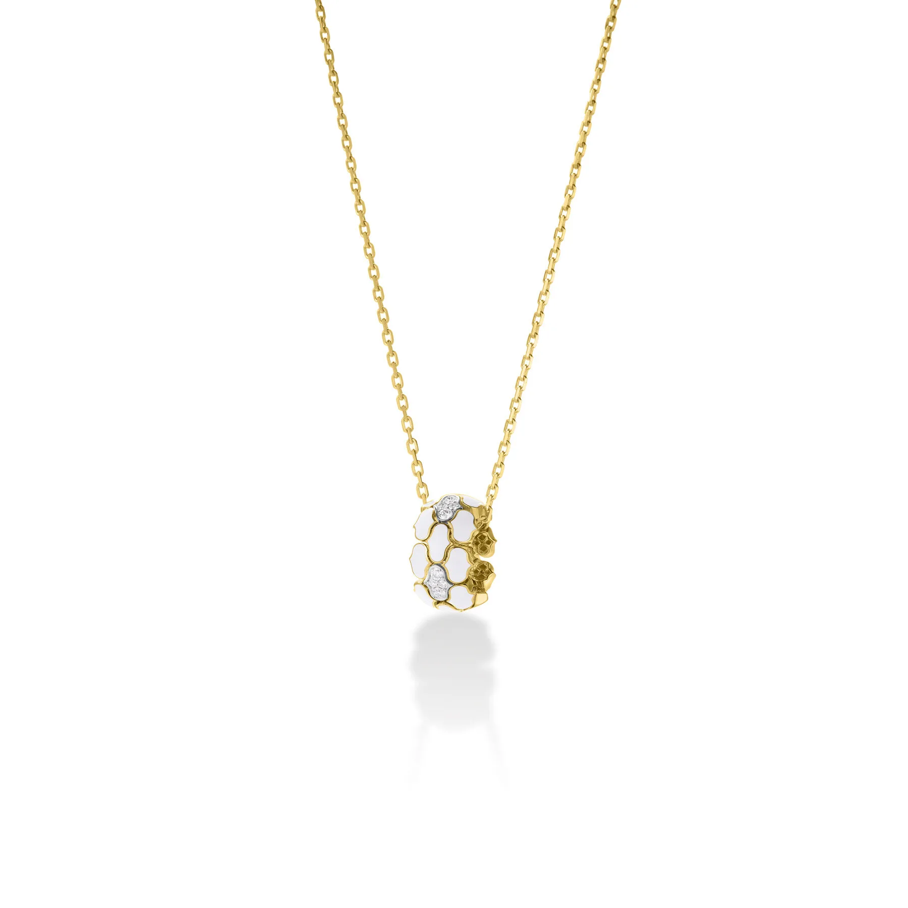 COBRA DIAMOND AND WHITE ENAMEL MEDIUM RONDEL NECKLACE